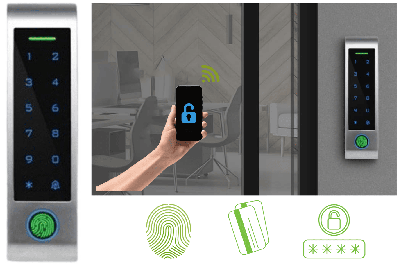 Thiết bị kiểm soát cửa ra vào mới sử dụng vân tay, mật mã, thẻ và ứng dụng điện thoại để thay thế cho khóa cửa cơ truyền thống, với nhiều yếu tố ưu việt :