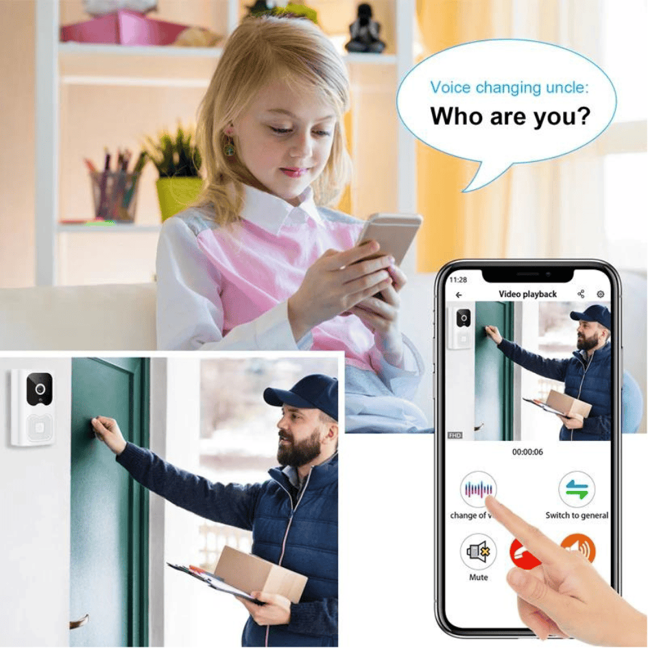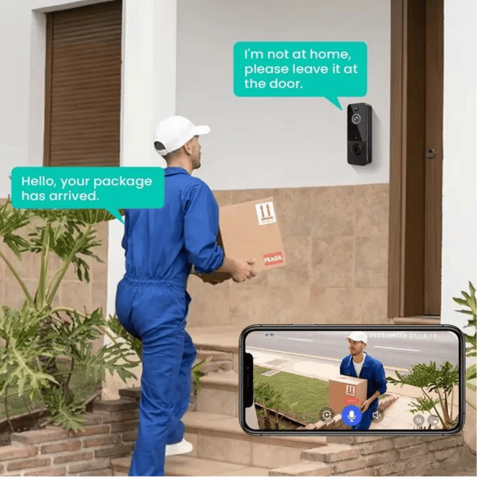 Chuông cửa tích hợp mic và loa cho phép đàm thoại hai chiều, khi nhấn chuông cửa bạn sẽ nhận được thông báo đến điện thoại