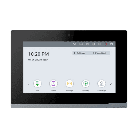 Cho phép bạn thực hiện cuộc gọi video với cửa ra vào biệt thự và mở cửa từ xa từ màn hình trong nhà hoặc qua ứng dụng cài trên điện thoại di động. Nó cũng giúp tích hợp dễ dàng với các thiết bị SIP.